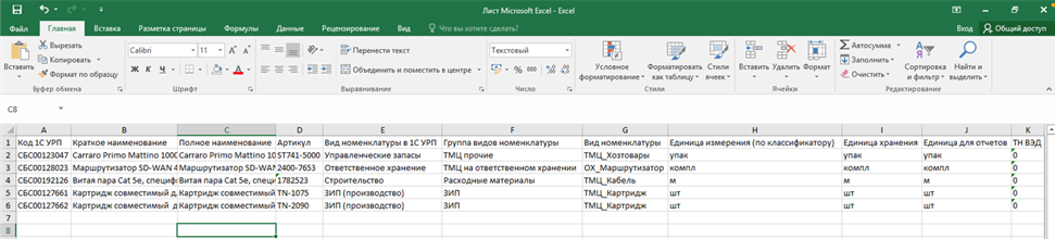 • Поставщик предоставляет файл в формате Excel, где каждая строка соответствует отдельной позиции номенклатуры.