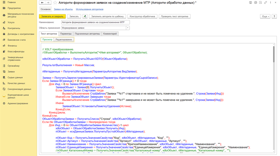 Алгоритмы обработки данных включают этап мэппинга полей, который отвечает за соответствие между загружаемой XML-структурой и справочником системы или заявкой на изменение.